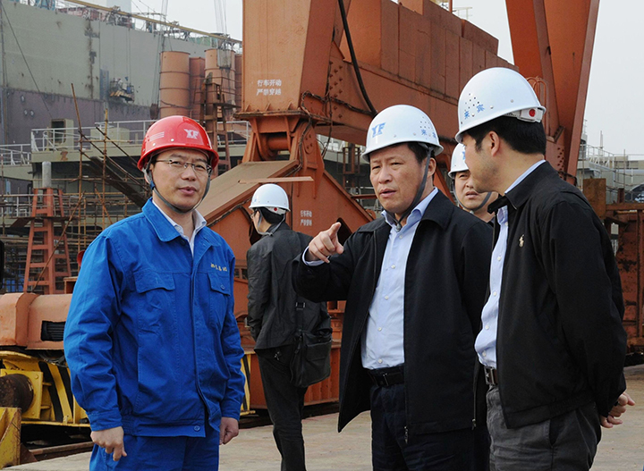 4月17日下午,浙江省副省長,舟山群島新區黨工委書記、市委書記、新區管委會主任孫景淼一行來司調研,并到舟山船廠船臺、碼頭區域進行了實地參觀。揚帆集團董事長、黨委書記李明東,總裁葉劍濤等高層領導熱情接待。